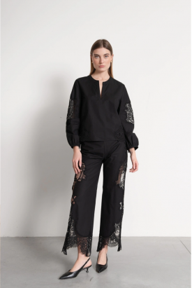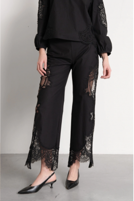 CALÇAS PRETAS COM RENDA GUIPURA