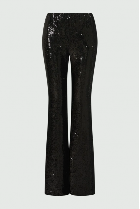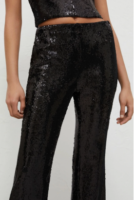CALÇAS LONGAS COM LANTEJOULAS PRETAS