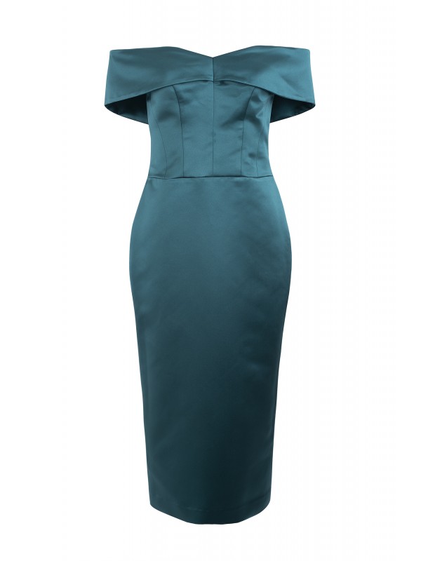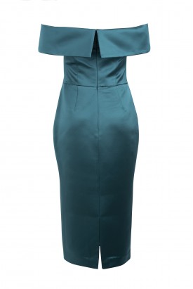 VESTIDO MIDI VERDE ESCURO DECOTE SEM OMBROS
