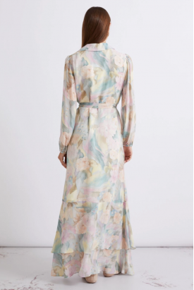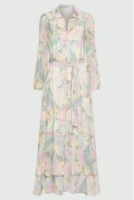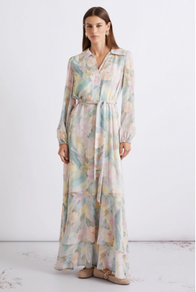 vestido georgette estampado floral pastel