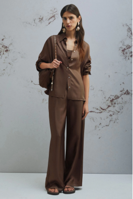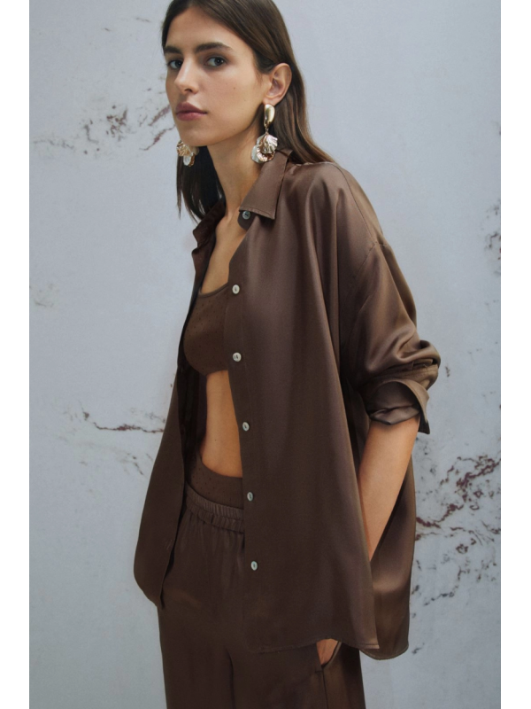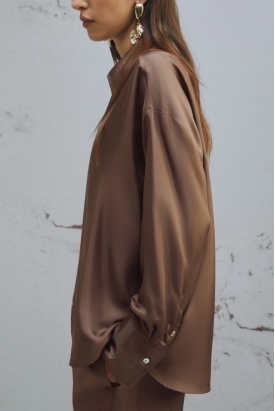camisa em seda castanha