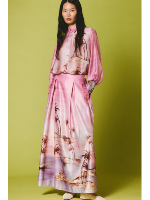 camisa estampada acetinada rosa