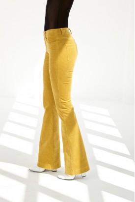 calças boca de sino em veludo cotelê